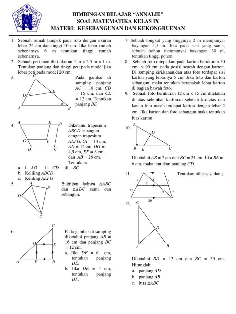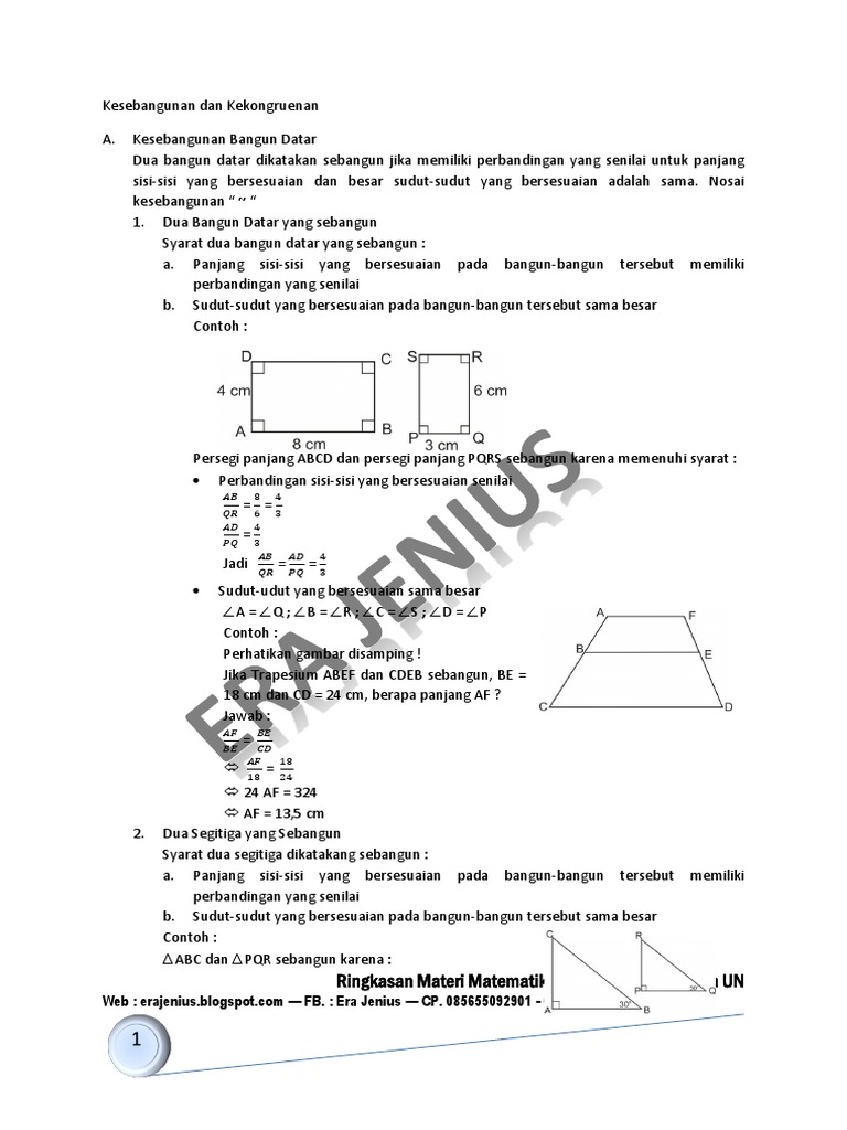 Kesebangunan dan kekongruenan kelas 9 / semester 1 i.